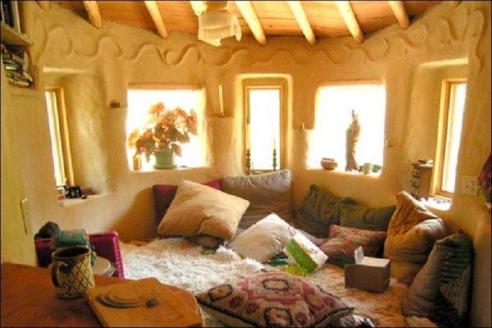 Subject to an ordinary city apartment for the formation of ceilings and walls, you can also limit yourself to decorating external coating imitating ordinary clay with ordinary straw. It is easy to apply to plaster, concrete, wood, drywall, hides the irregularities and defects of the walls (partitions).